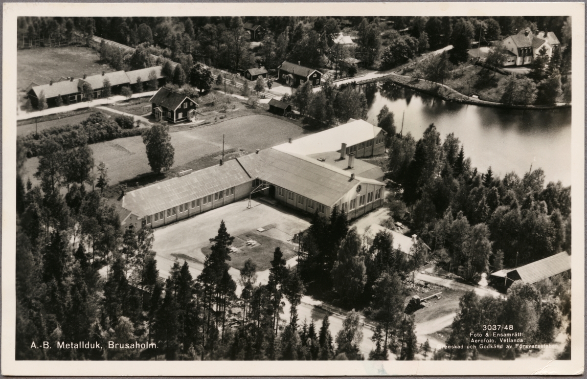 Flygfoto över Aktiebolaget Metallduk i Bruzaholm.
