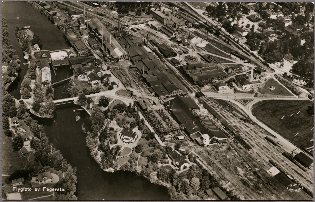 Flygfoto över Fagersta järnverk och Strömsholms kanal.