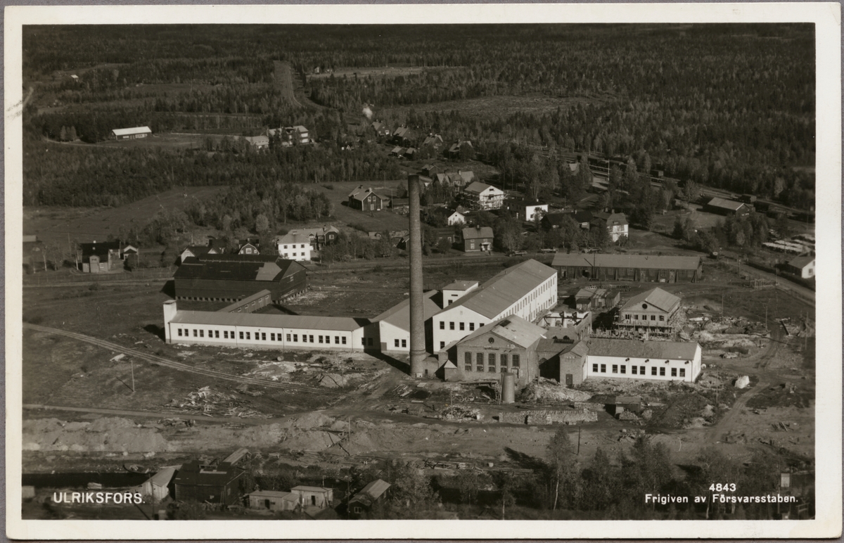 Flygfoto över Ulriksfors pappersmassefabrik.
