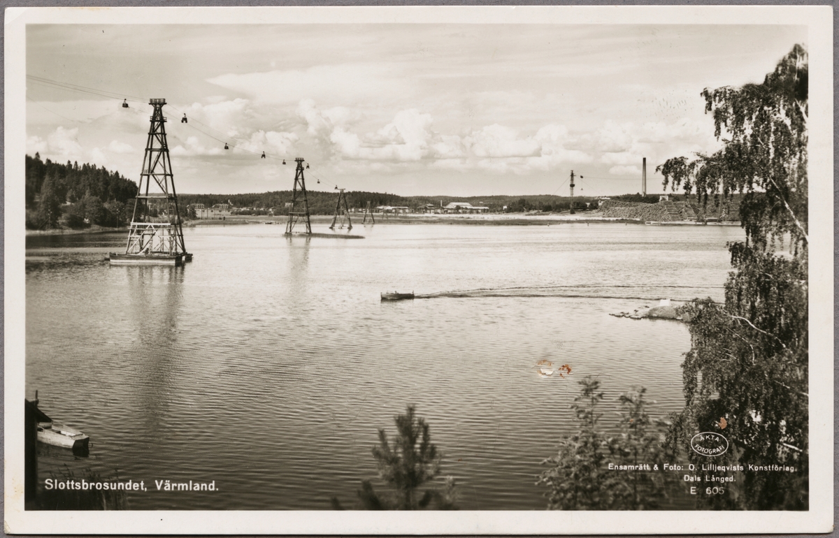 Slottsbron. Med linbana för transport av ved till massaindustrin i bakgrunden.