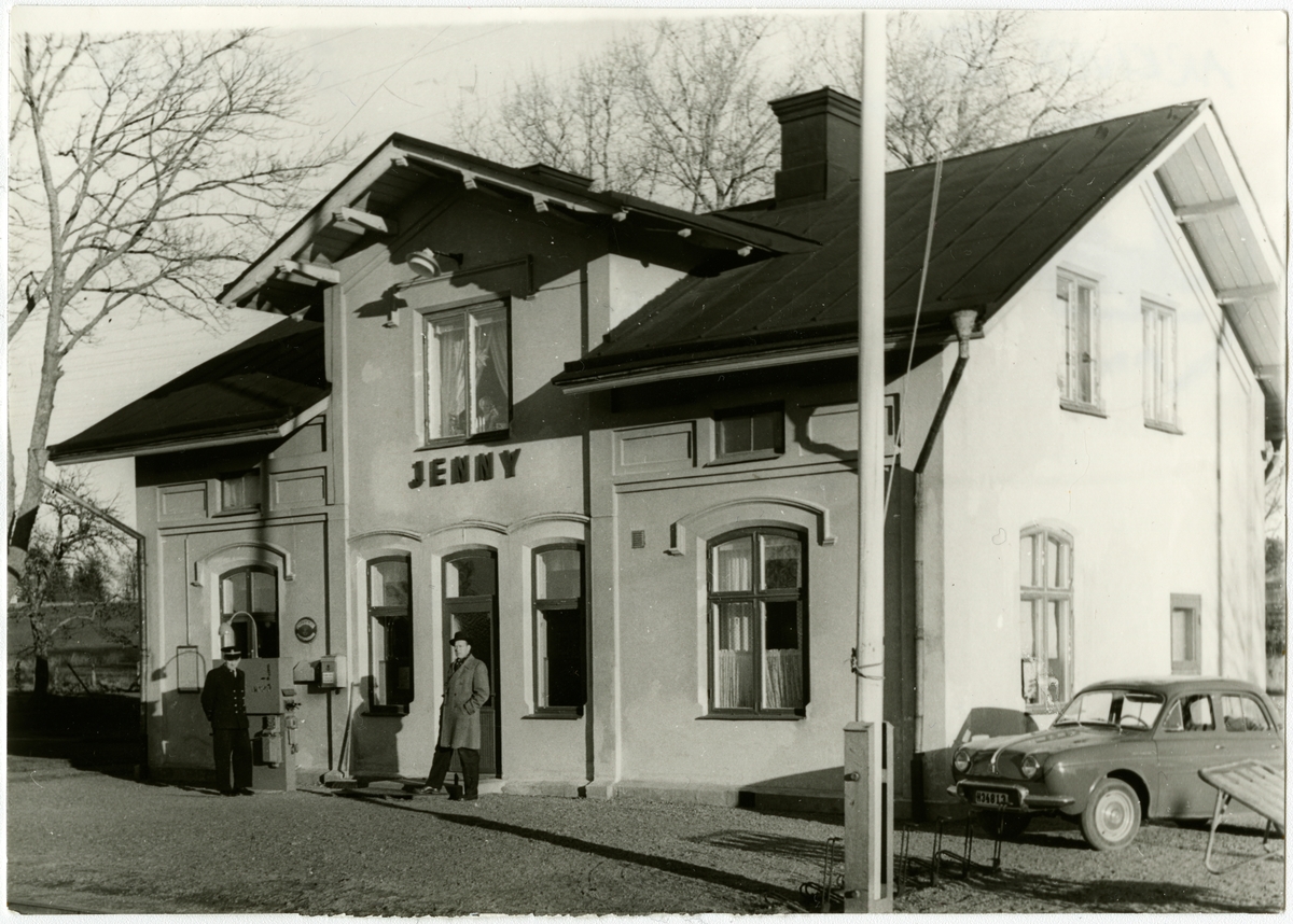 Station i Jenny. Bilen är en Renault Dauphine.