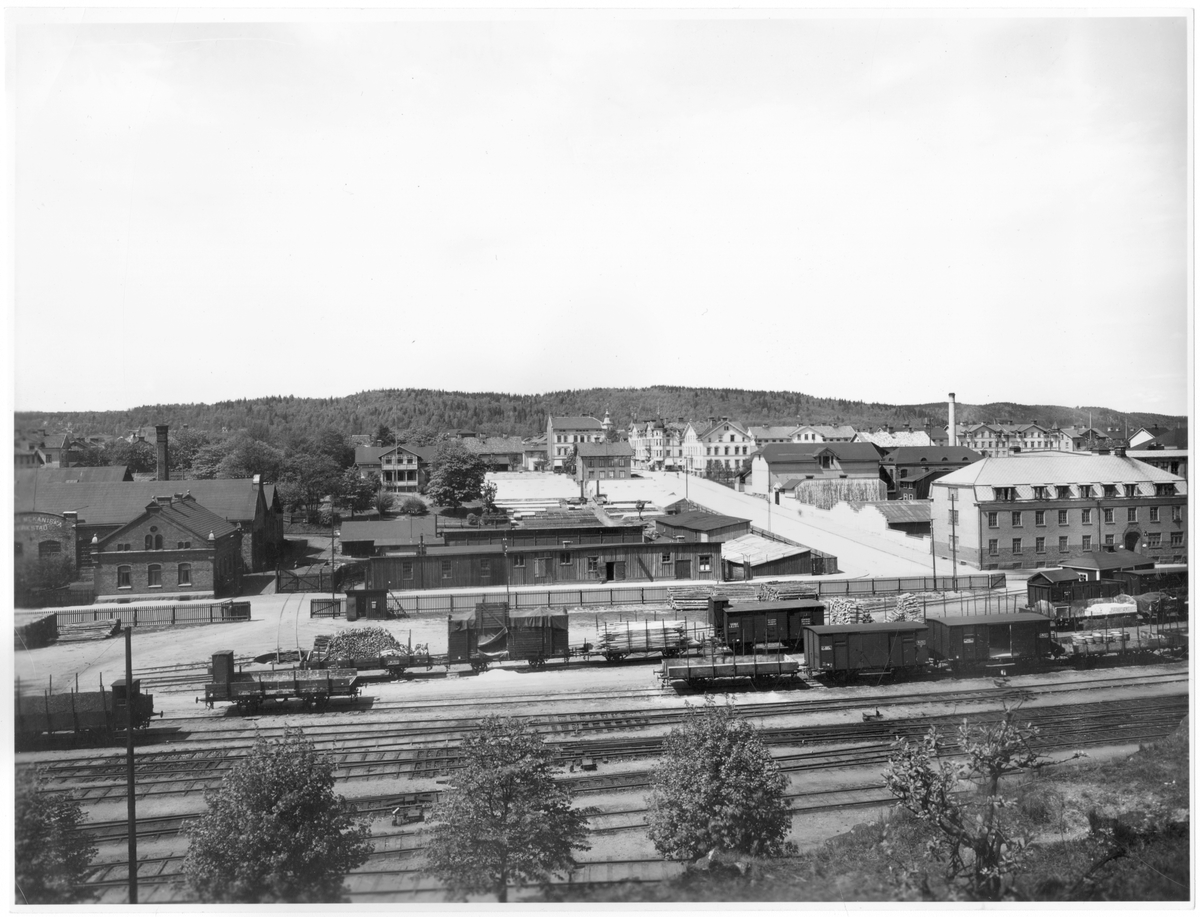 Bangården vid Borås mekaniska verkstad 1927. Utsikt från Krokhallsberget åt sydväst.
