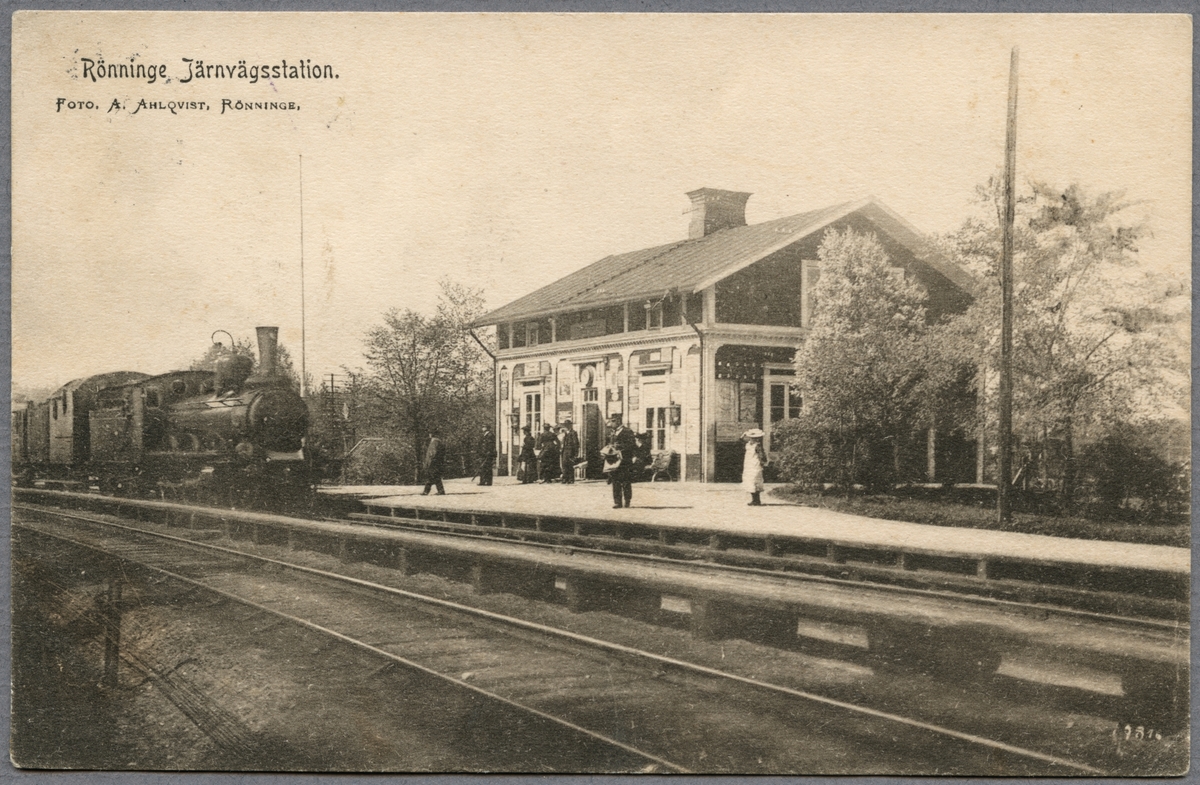Lok och resande vid Rönninge station.