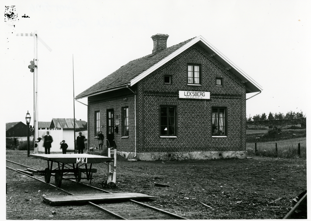 Personerna ser ut att ha gjort honör under kamerans långa slutartid. En mindre MKJ-vagn är under reparation, hjulbyte, på spåret