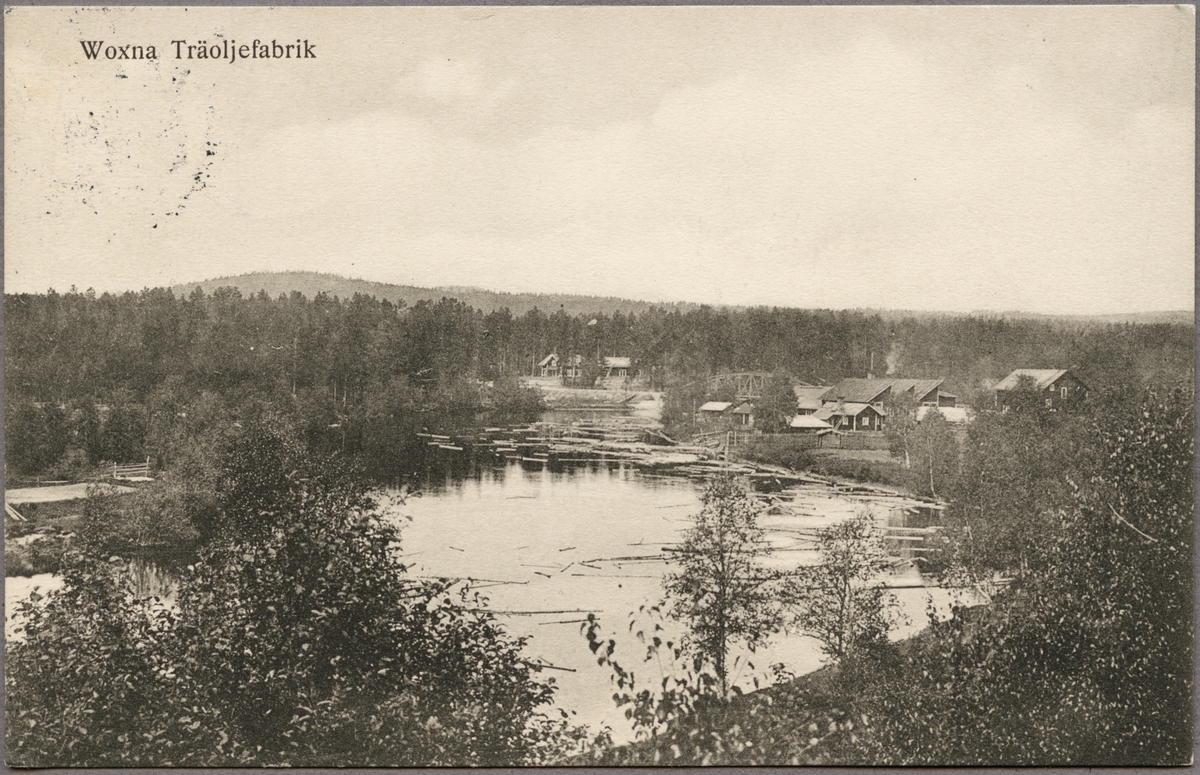 Vy över Voxnan med Voxna Träoljefabrik i bakgrunden.