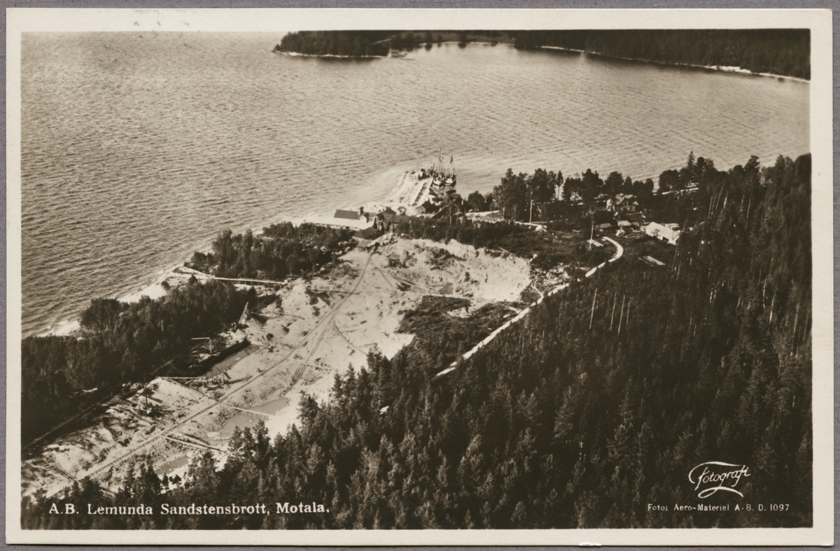 Flygfoto över Lemunda stenbrott, nordväst om Motala.