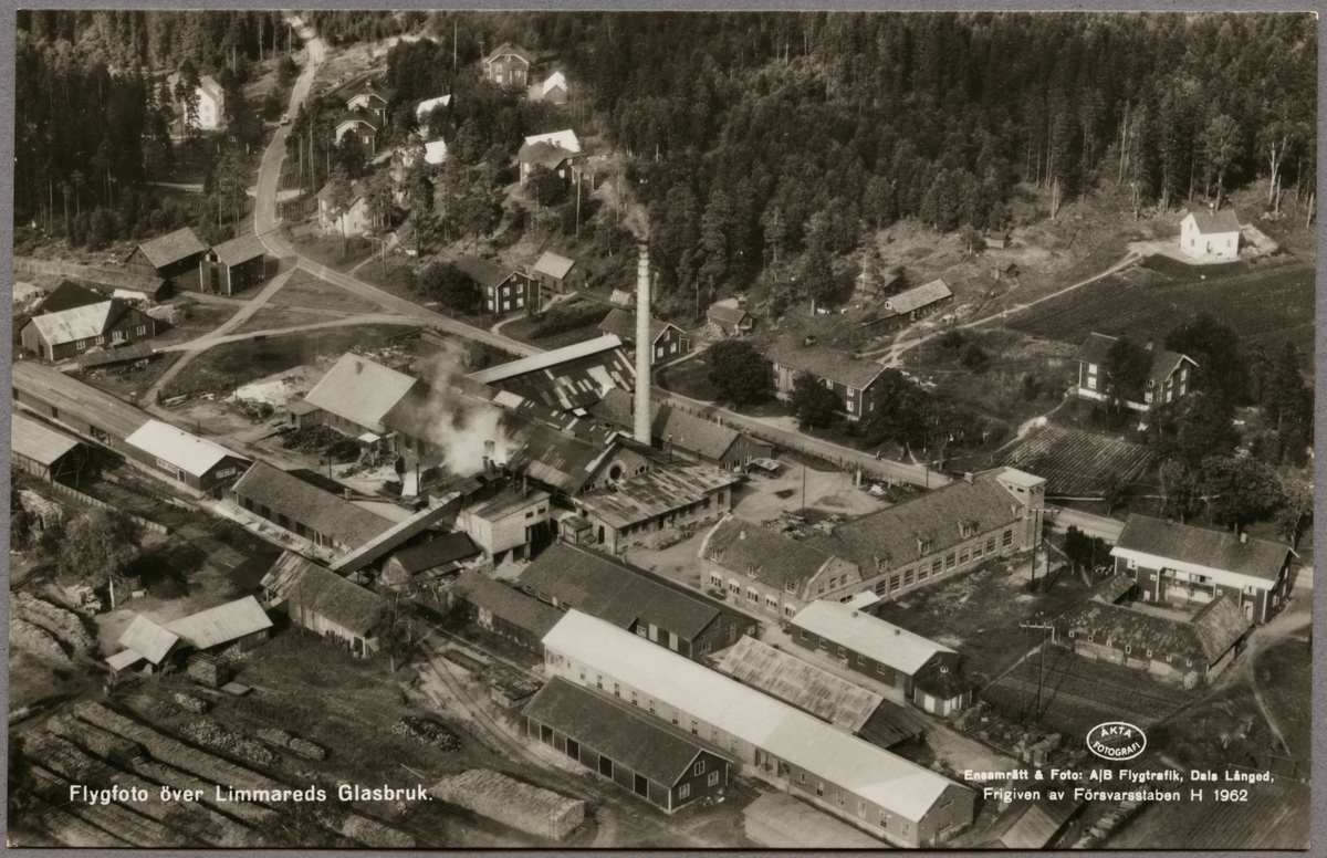 Glasbruket i Limmared från flygplan.