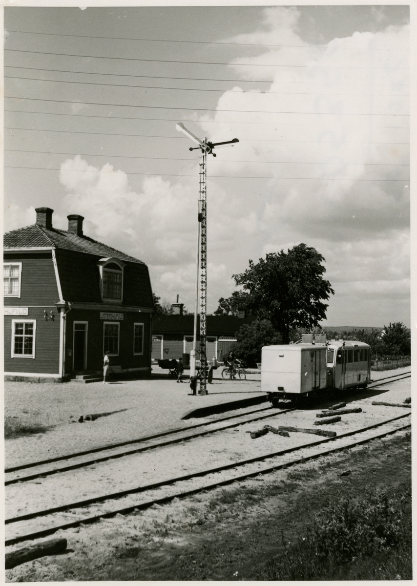 Blekinge Kustbanor, BKB. Rälsbuss BKB 1 tillverkad på Motala Verkstad 1936 med korg frånHägglund & Söner. Släpet är BKB 491 byggt på BKB egen verkstad 1936.