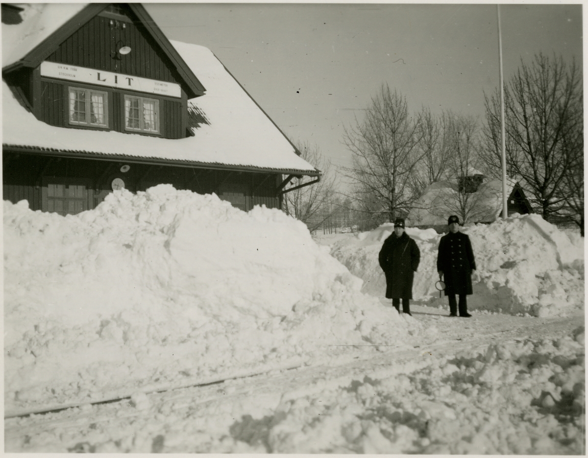 Lits Stationshus vintern 1936. Ställföreträdare och Banmästare Lit.