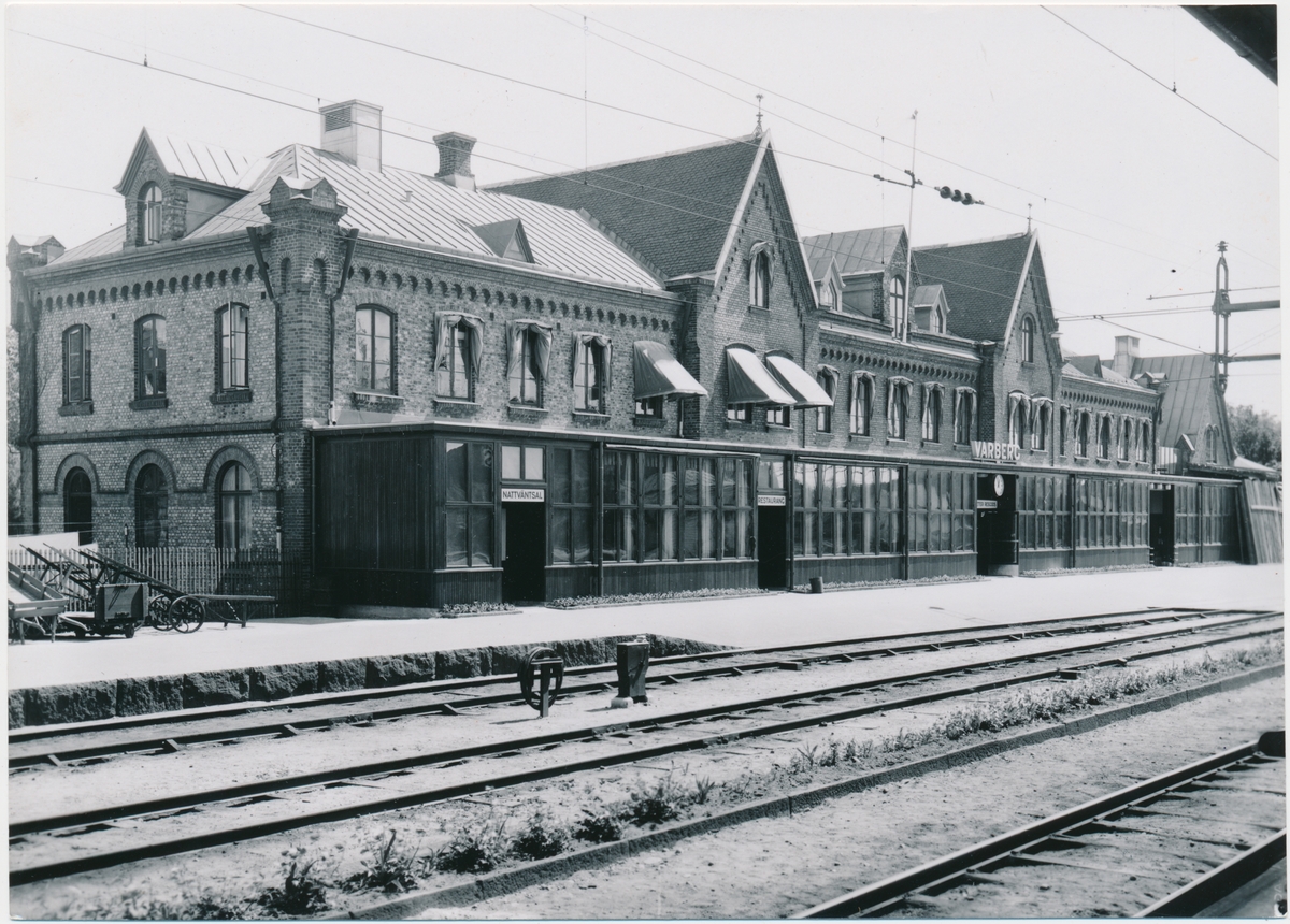 Varberg station omedelbart efter sista tillbyggnaden med splitterskydd t.h./ år 1940