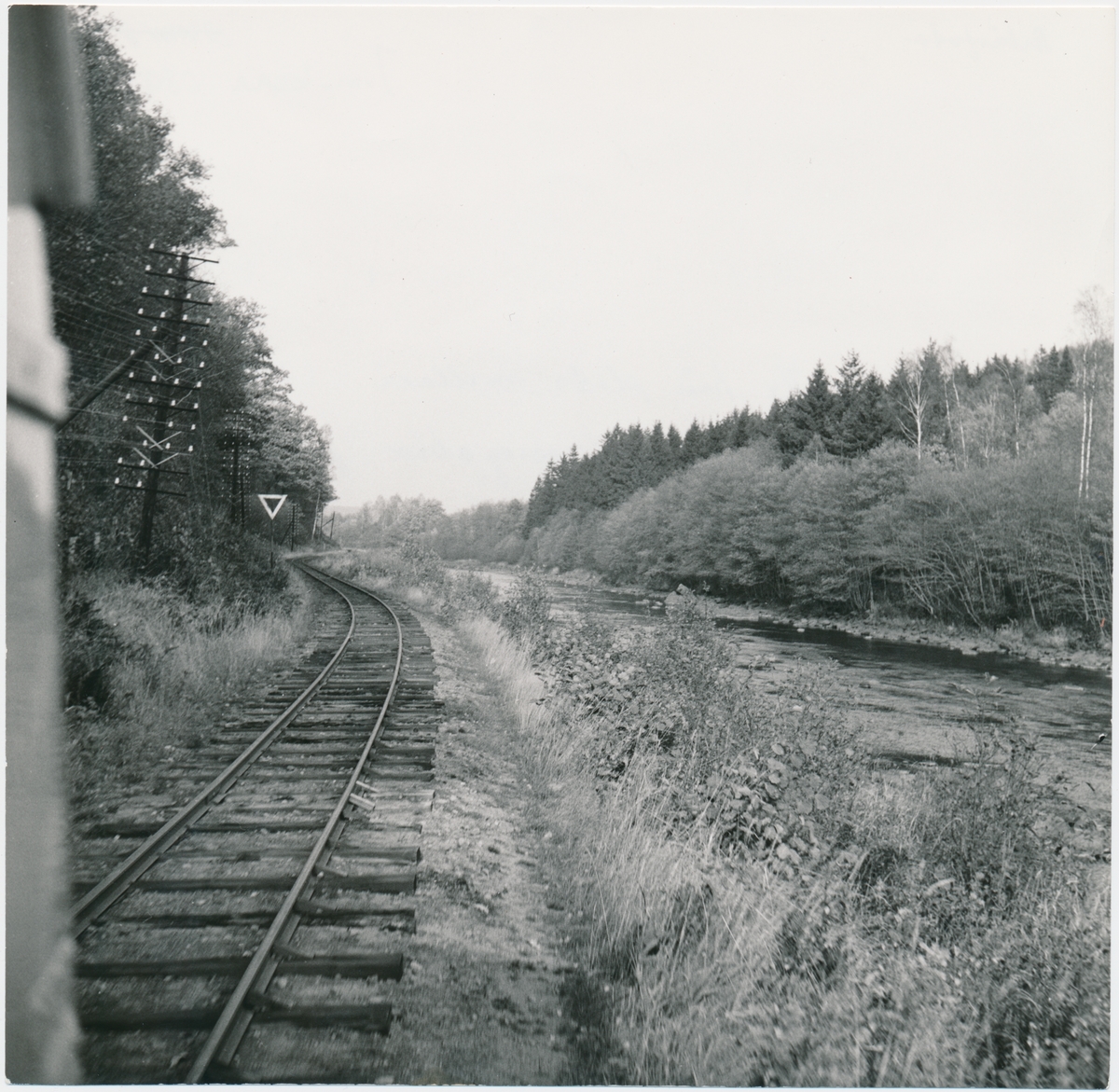 Vy från plats mellan Höstena-Vessigebro på linjen Falkenberg-Limmared som nedlades 1/11 1959 och 16/12 1960