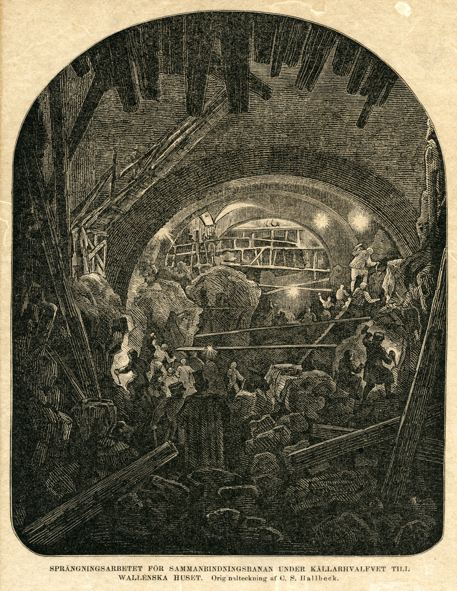 Sprängningsarbete för sammanbindningsbanan på linjen mellan Södra och Norra Tunnelmynningen.