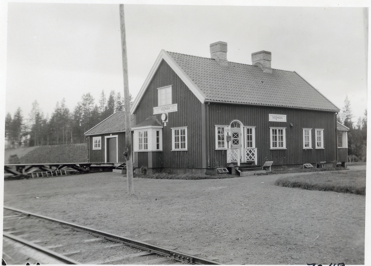 Vojmåns envånings stationshus och är byggt i trä och sammanbyggt med godsmagasinet. 1923 anlades hållplats.
