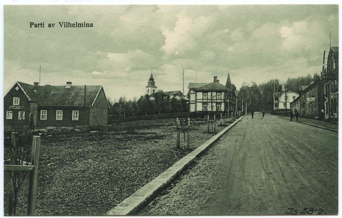 Vykort från F.H. Sörlins Pappershandel Vilhelmina. Parti av Vilhelmina.