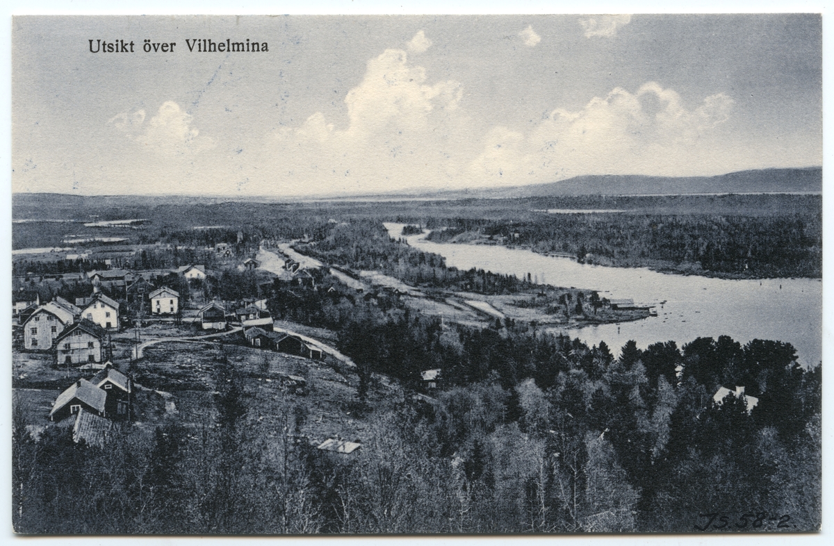 Utsikt från Vilhelmina. Vykort från Sörlins Pappershandel Vilhelmina.