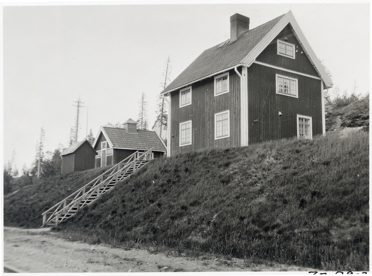 Husbyggnader och avträdeshus intill gamla Porjus Station.