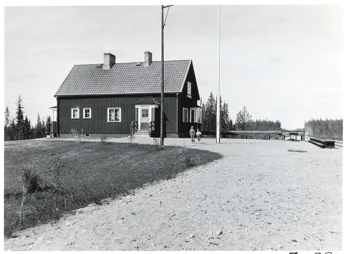 Husbyggnad med väntsal gamla stations stugan ser vi på bilden.