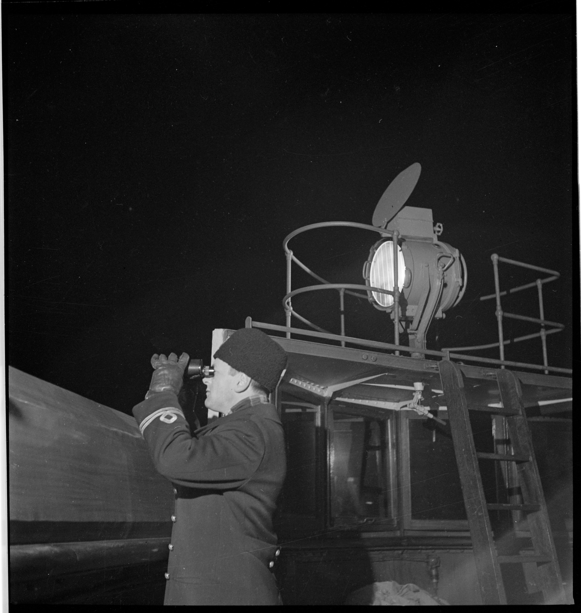 Löjtnant i flottan spanar i sin kikare.