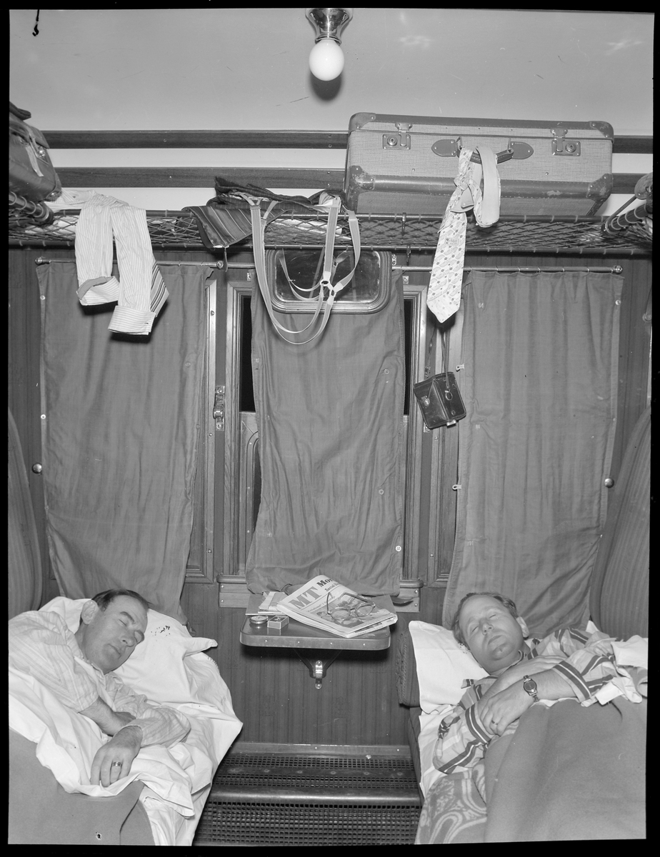 Resande i sovkupé. I sängen till höger ligger Eric Lundquist.