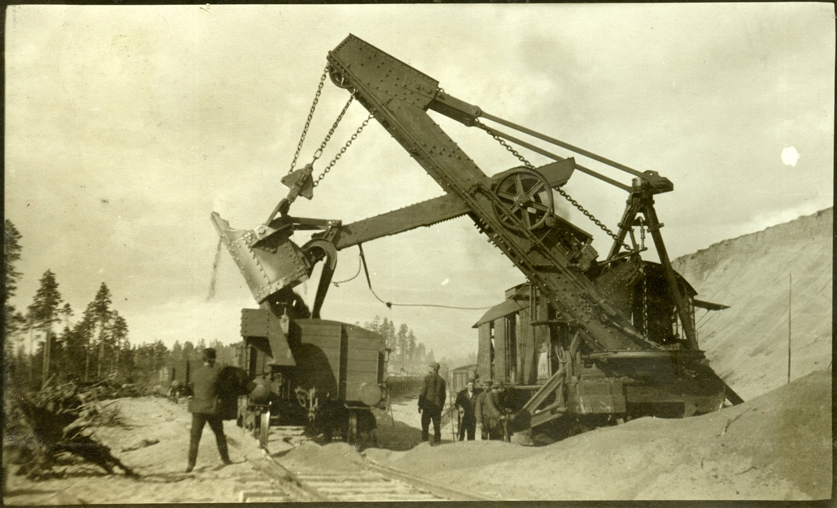 Titel: Räveln. Statens Järnvägar, SJ. Gruslastning i Rävelns grustag.