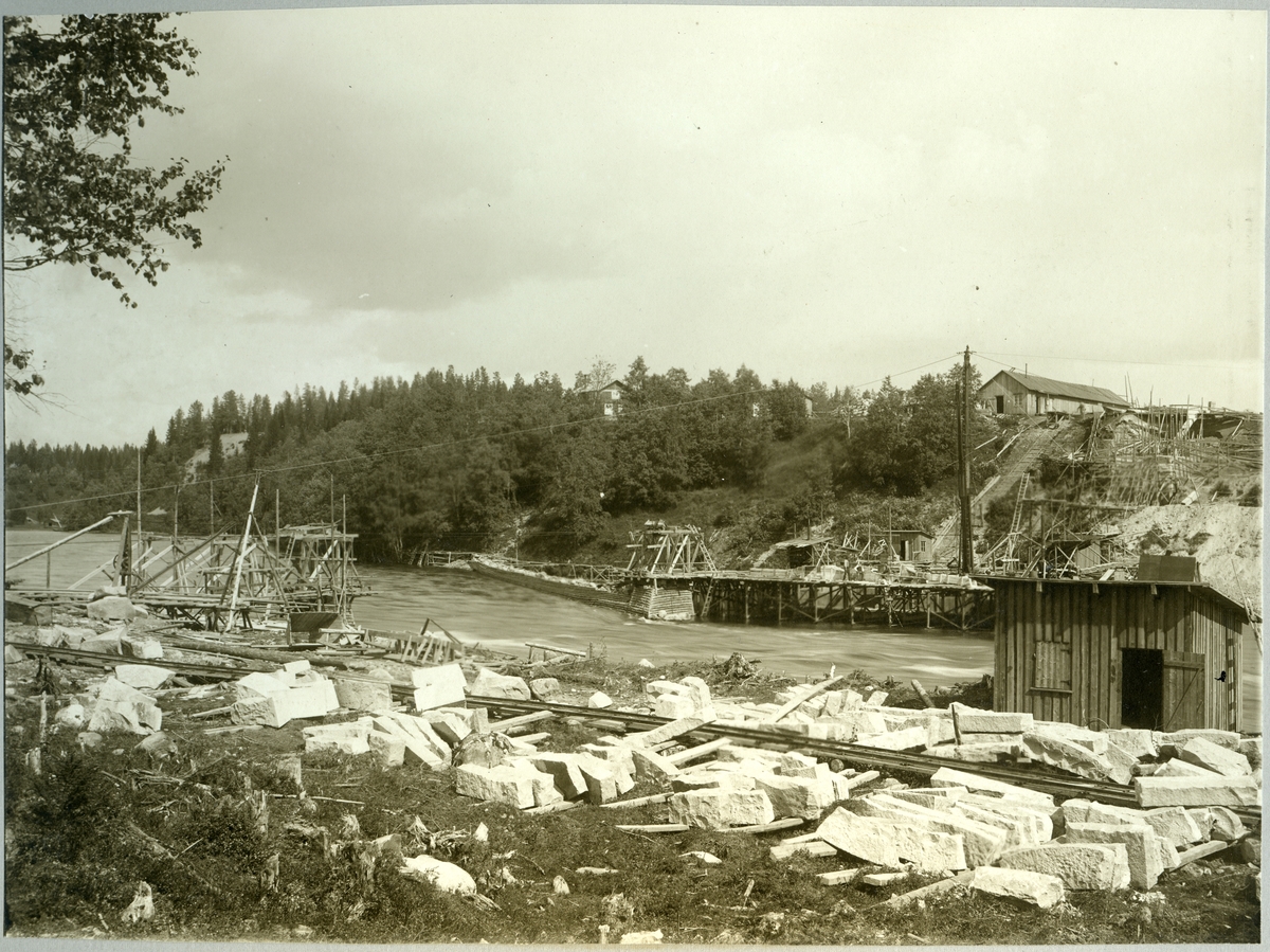 Slind. Statens Järnvägar, SJ. Brobygget över Skellefte älv i augusti 1910.