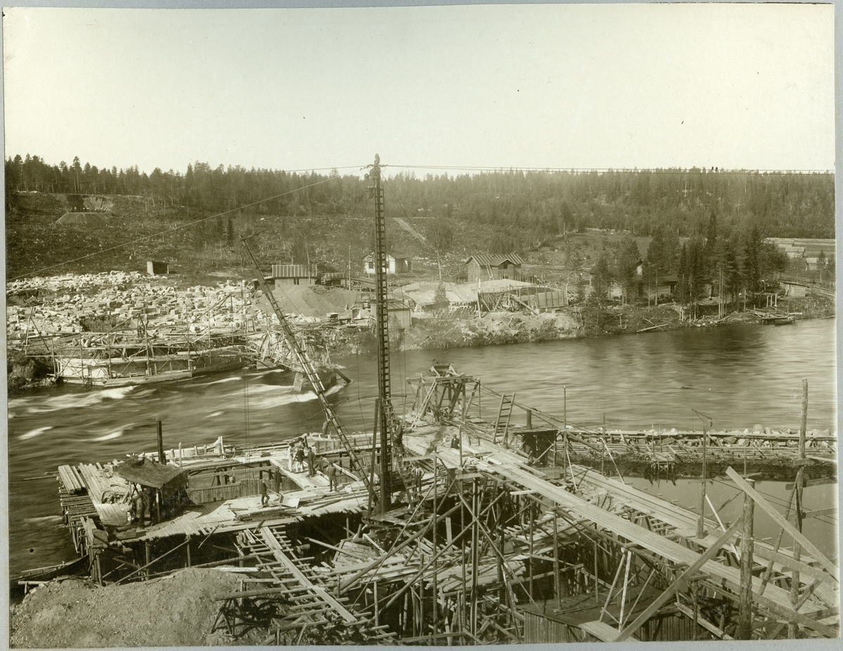 Slind. Statens Järnvägar, SJ. Brobygget över Skellefte älv i augusti 1910.
