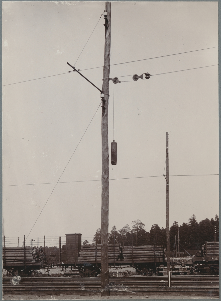 Försöksbanan Stockholm - Järva. Vikt för att hålla kontaktledningen spänd, oberoende av vädrets temperatur.
