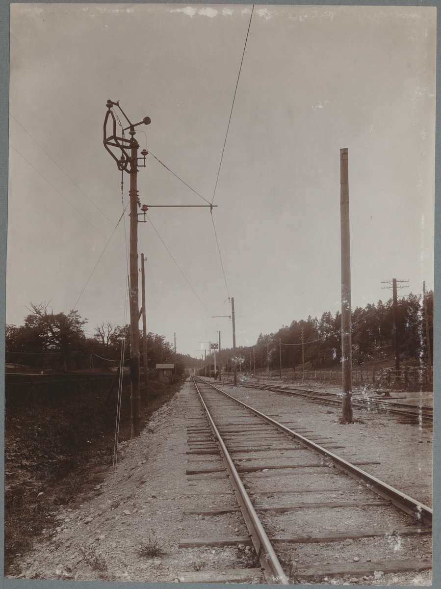 Försöksbanan tomteboda - Värtan. Sträckan Albano - Värtan. Vridbar försöksutliggare med förstärkta isolatorer.