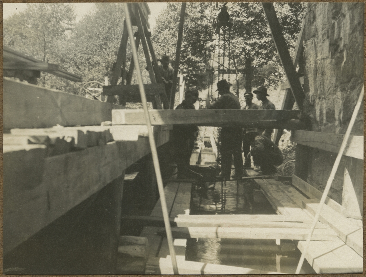 Dubbelspårsbyggnaden mellan Alingsås - Olskroken. Bron över Säveån södra brohalvan. Muddring för spånt vid västra landfästet.