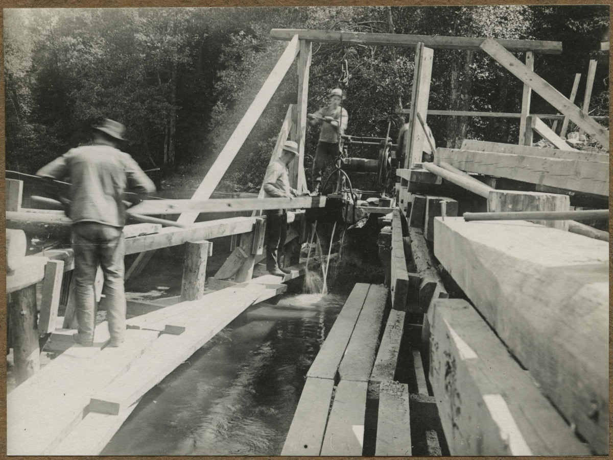 Dubbelspårsbyggnaden mellan Alingsås - Olskroken. Bron över Säveån södra brohalvan. Muddring för spånt.