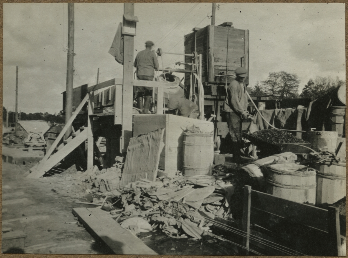 Dubbelspårsbyggnaden mellan Alingsås - Olskroken. Bron över Säveån södra brohalvan. Betongblandningstation.