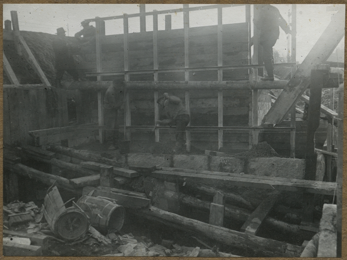 Dubbelspårsbyggnaden mellan Alingsås - Olskroken. Vägport vid Floda. Gjutformar uppsättas för norra halva.