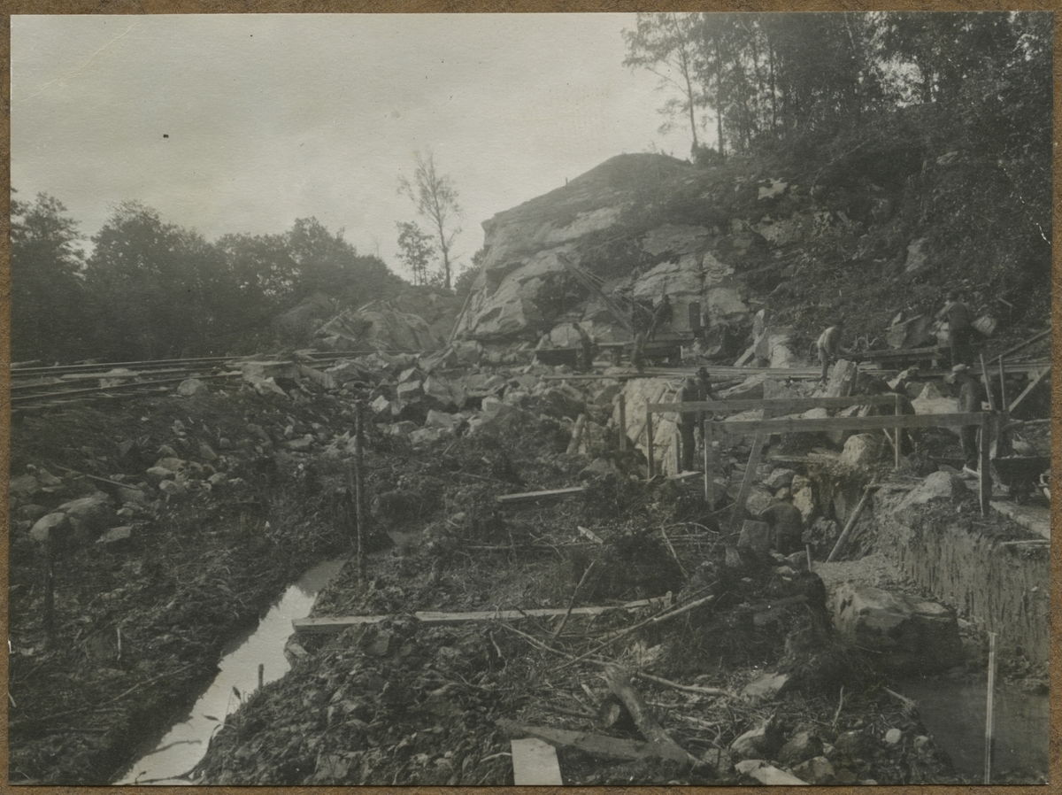 Dubbelspårsbyggnaden mellan Alingsås - Olskroken. Koberget. anläggning av stödmur för provisoriskt förbigångsspår.