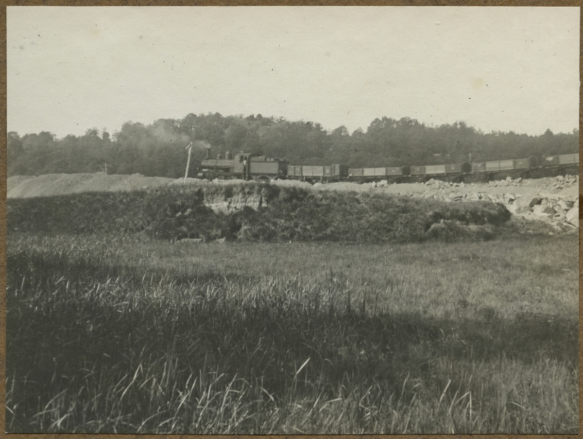 Dubbelspårsbyggnaden mellan Alingsås - Olskroken. SJ K lok. Öjaredsbanken markuppskjutning förordsakad av bankens sjunkning.