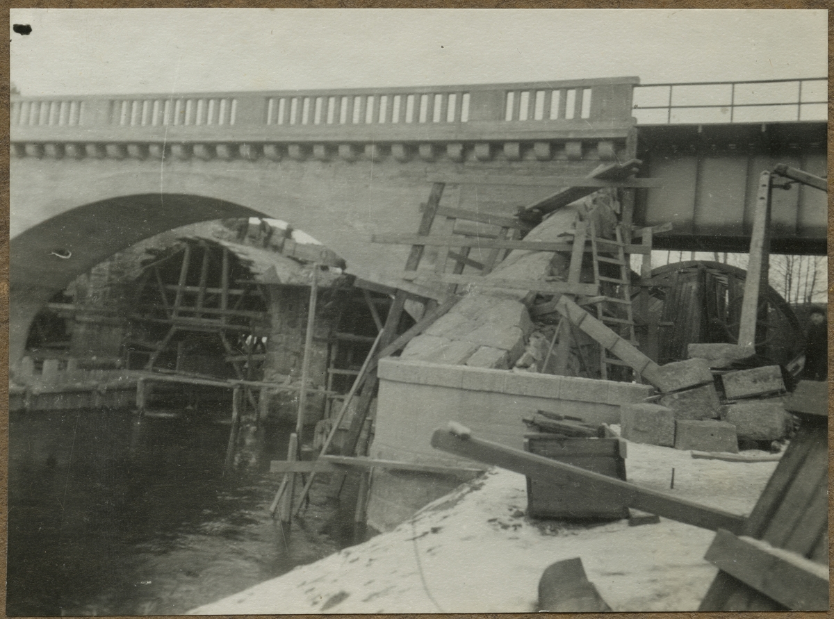 Dubbelspårsbyggnaden mellan Alingsås - Olskroken. Bron över Säveån. provbelastning av pålar, norra brohalvan.