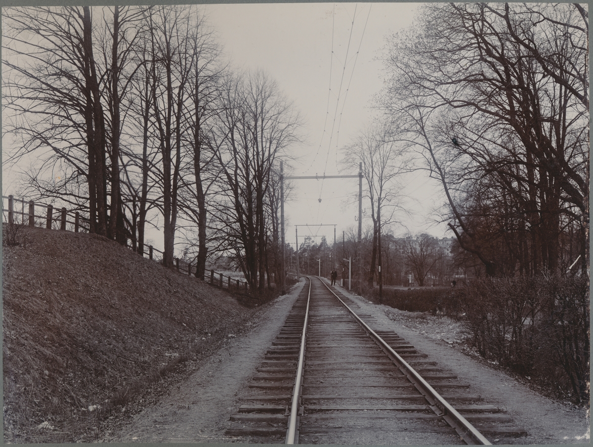 På sträckan Tomteboda - Norrtull. Kontaktledningen har dubbla bärtrådar, detta kom under försökens gång att medföra problem med uppsträckningen av kontaktledningen.