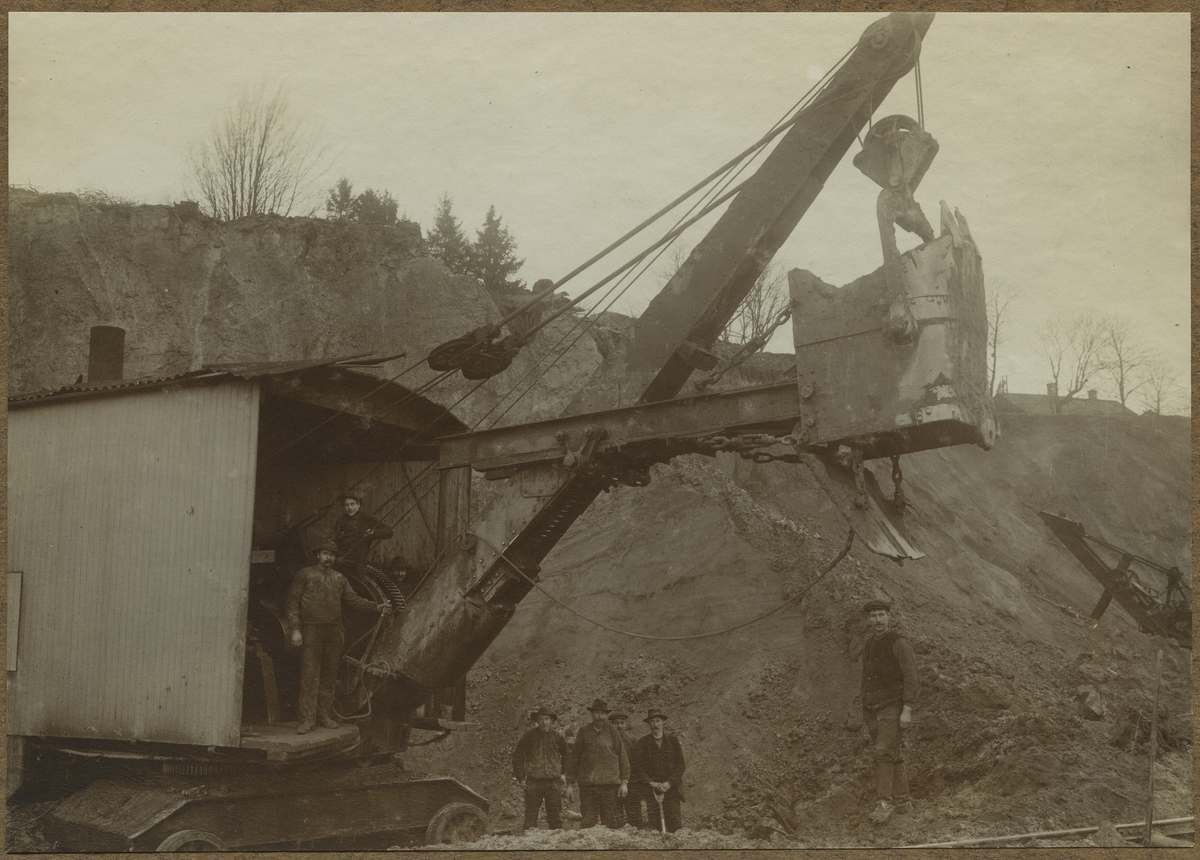 Dubbelspårsbyggnaden mellan Alingsås - Olskroken. Ånggrävmaskin Bycf SJ Q8 1010, Inköpt 1913, Slopad 1930, Skrotad 1930. Torps grusgrop grävmaskin i arbete.