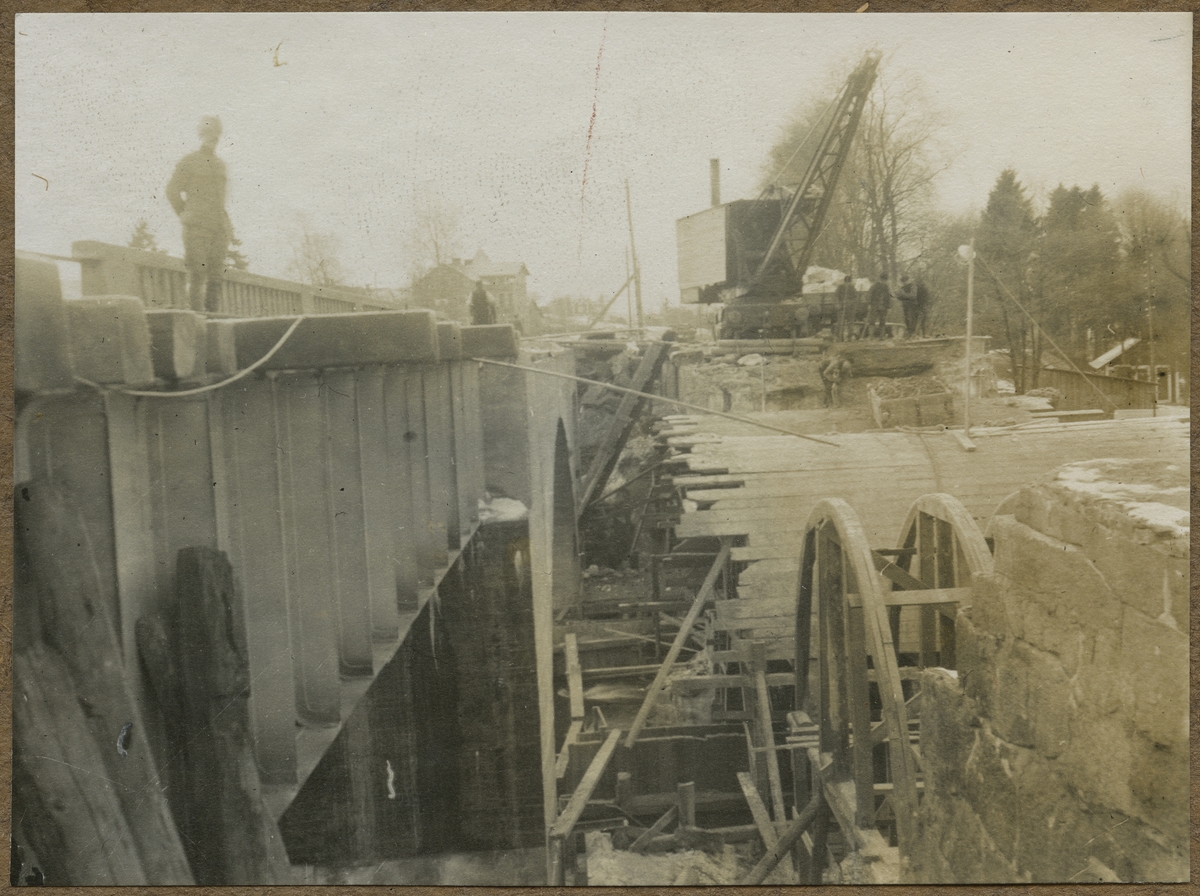 Dubbelspårsbyggnaden mellan Alingsås - Olskroken. Bron över Säveån, rivning av gamla bron.