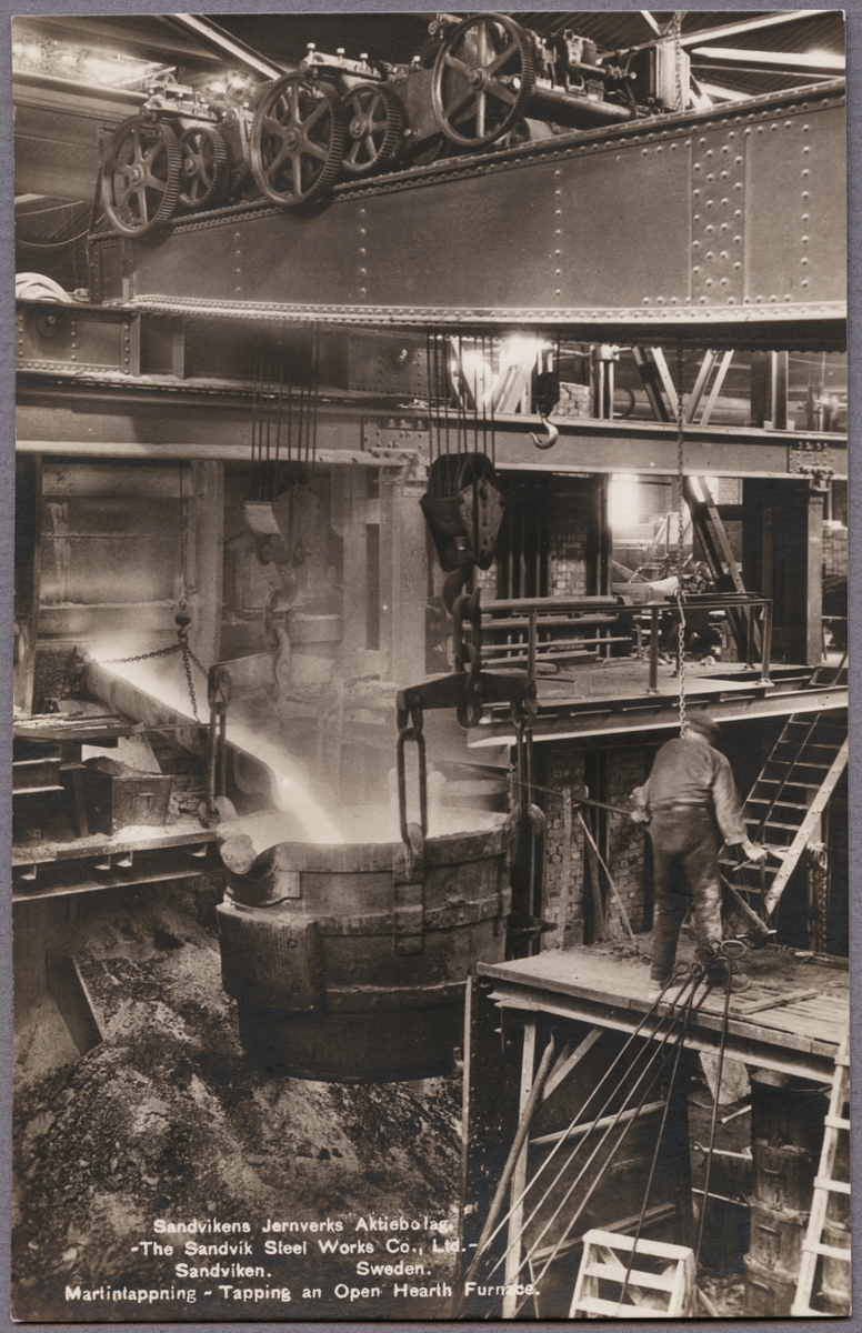En Martinugn tappas på järn i Sandvikens Järnverk.