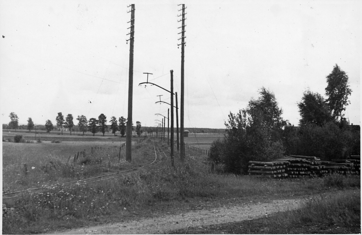 Vy över smalspårsbanan Stockås-Mullhyttemo mellan Stockås torvströfabrik och Mullhyttemo station.