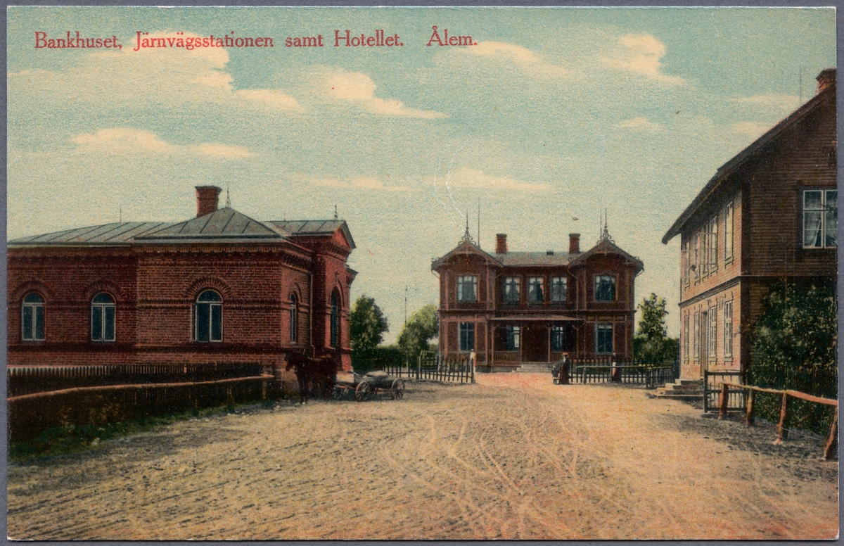 Sett från vänster Bankhuset, Järnvägsstationen samt Hotellet i Ålem.