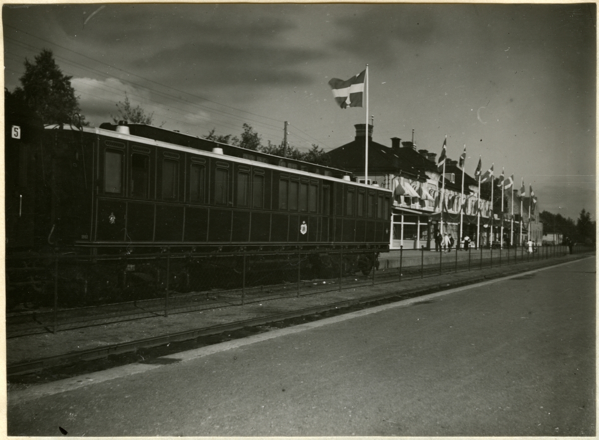 Östersund station under utställningen 1920. Statens Järnvägar, SJ Ao3 1861.