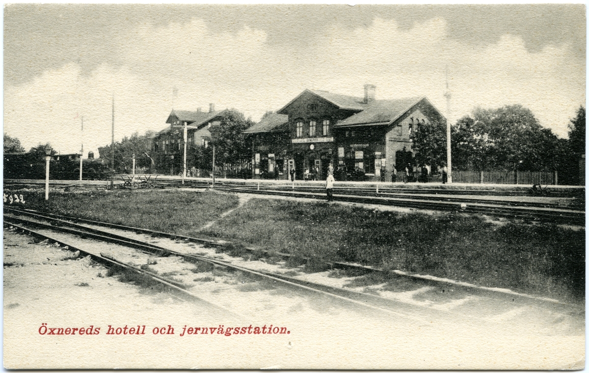 Öxnered station och järnvägshotell. Bergslagernas Järnväg, BJ. Stationen till höger på bilden.