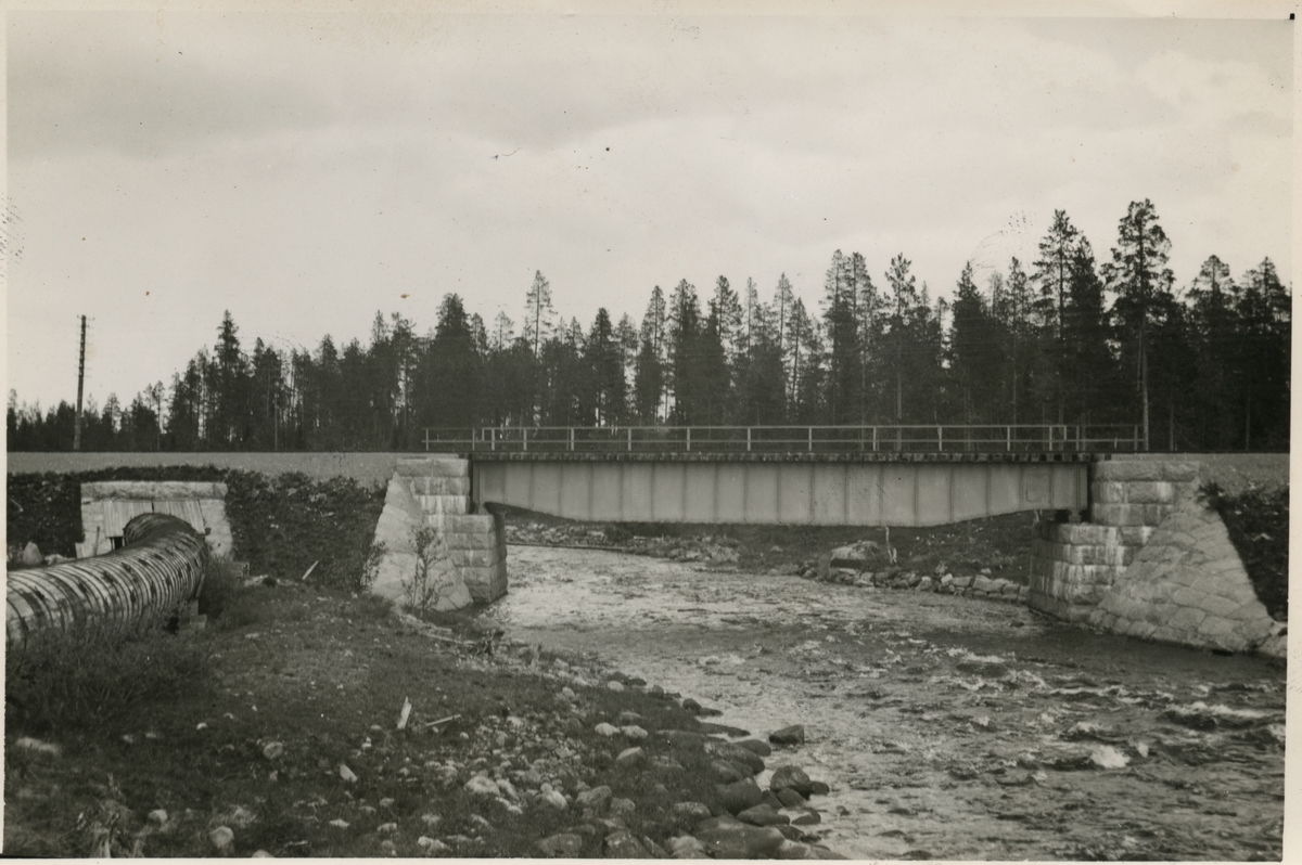 Titel: Järnvägsbro över Svärdälven. Järnvägen som går genom Jokkmokks område sträcker sig över många vattendrag, bäckar, åar och älvar. Broarna som byggdes över de anpassades till terrängen. De var framförallt funktionella men, deras utseende gick från väldigt enkla, grovhuggna till sublima, estetiskt utformade valvbroar.