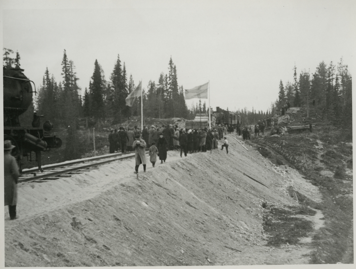 Sammanspikning av inlandsbanans sista skenor i september 1936.