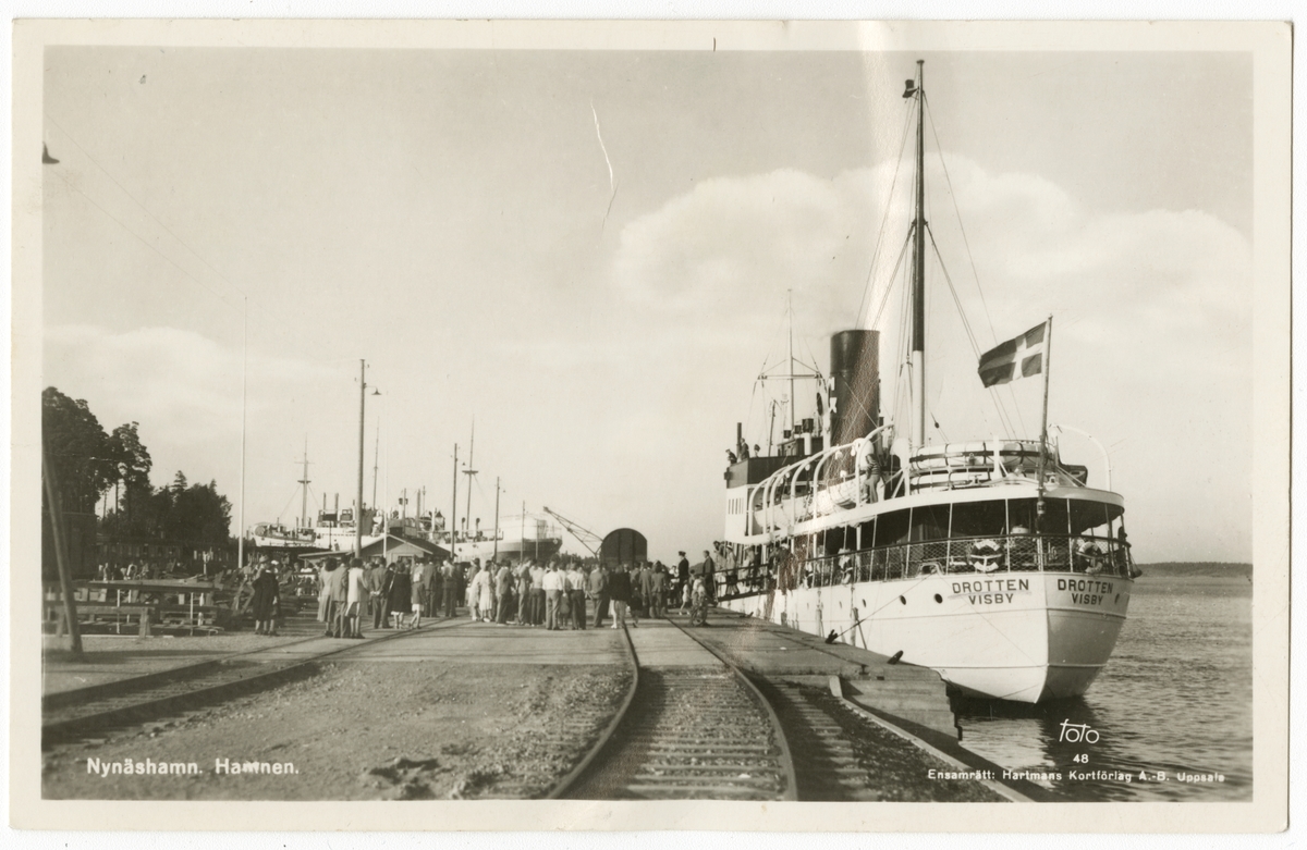 Hamnen Nynäshamn med fartyget Drotten vid kajen.