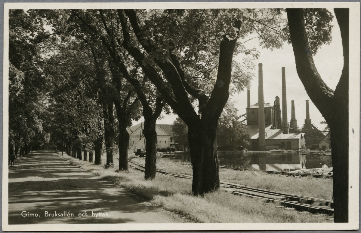 Bruksallén vid Gimo Bruk, längst bort till höger i bild står Hyttan.
