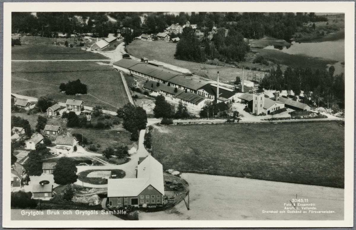 Flygfoto över Grytgöl, till höger i bild ses Grytgöls Bruk.