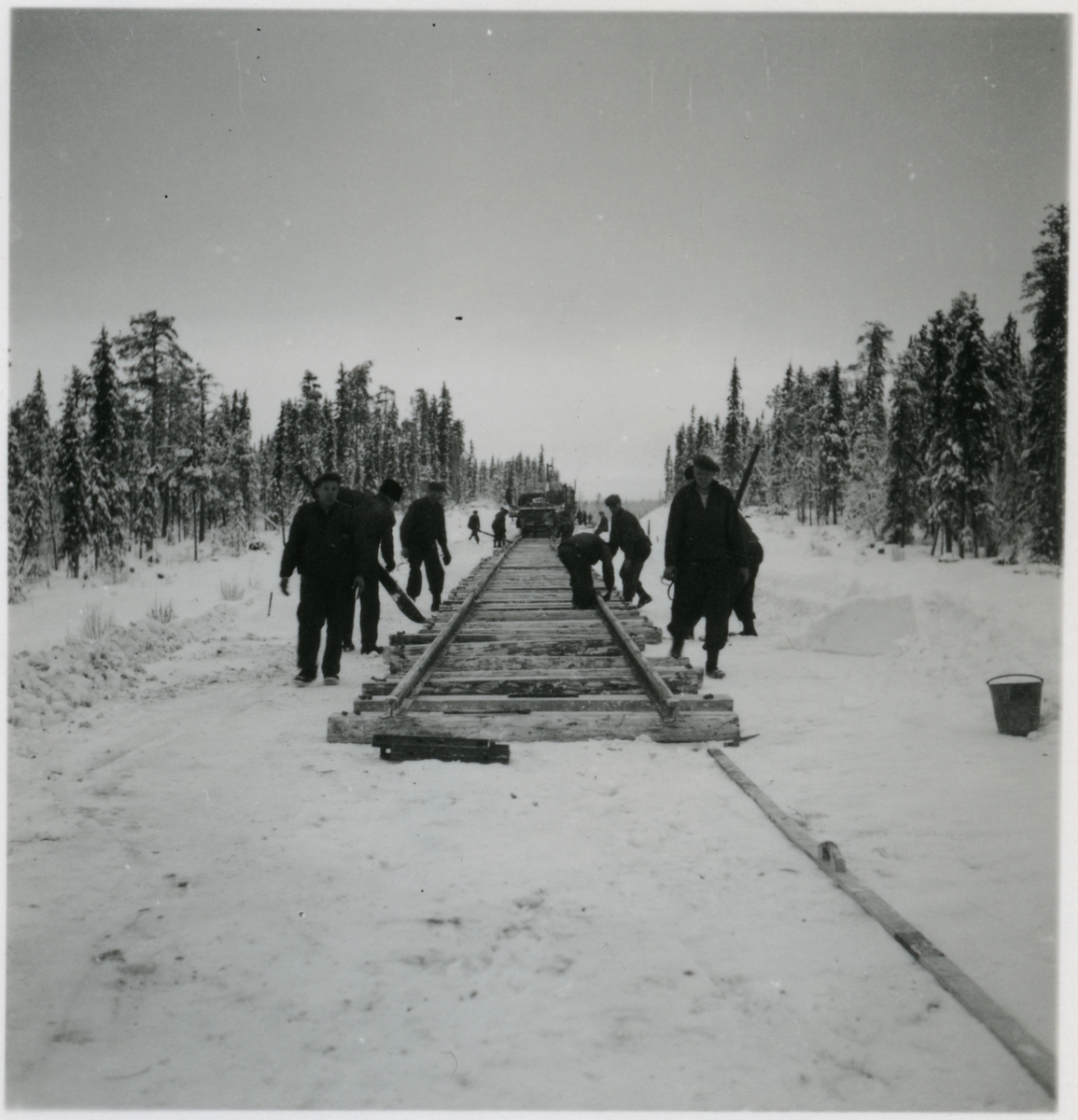 Rälsläggning längs sträckan Sorsele - Jokkmokk.