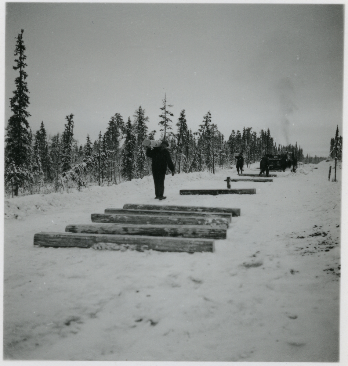 Rälsläggning längs sträckan Sorsele - Jokkmokk.